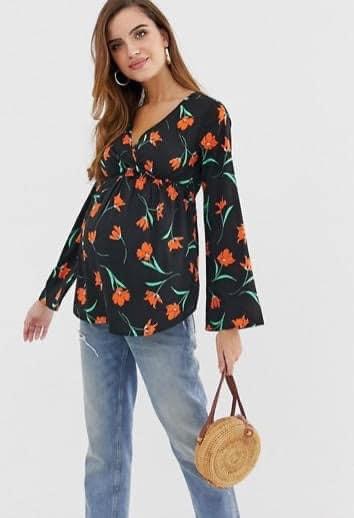Blouse cache cœur fleur orange taille M